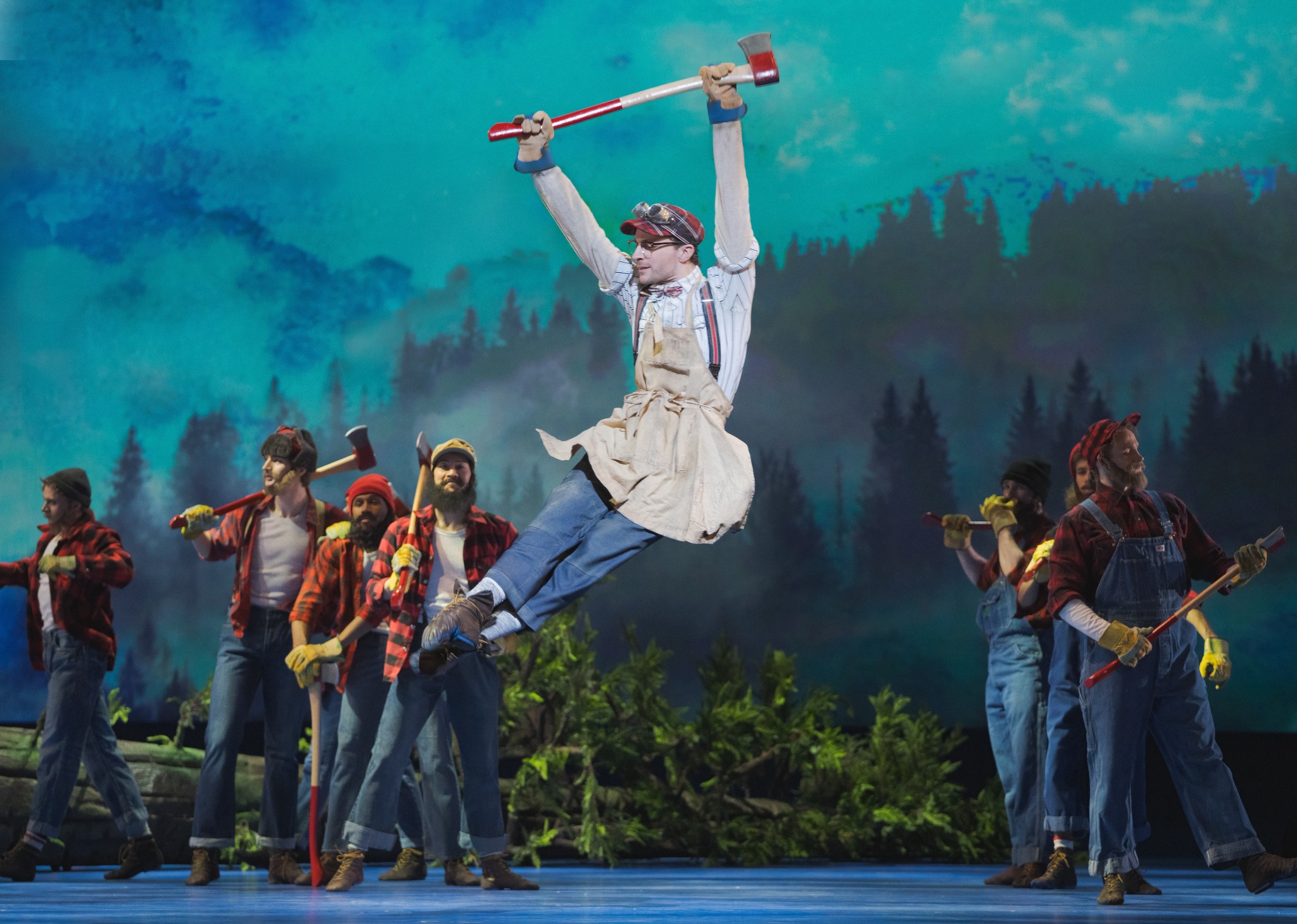 One of the production’s most charming touches is its playful Canadian framing. Lumberjacks in red flannel chop down trees with axes, a Mountie appears in a chaotic tavern scene, and raccoons and beavers wander through the action. One memorable location is the Red Lobster Inn, where Pinocchio briefly finds himself among a lively crowd of drinkers and tourists dressed in maple leaf gear.